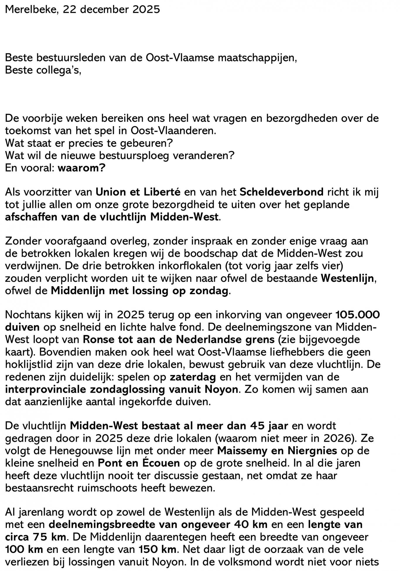 Lezersbrief Johan De Vroe - "Union & Liberté" - "Scheldeverbond"