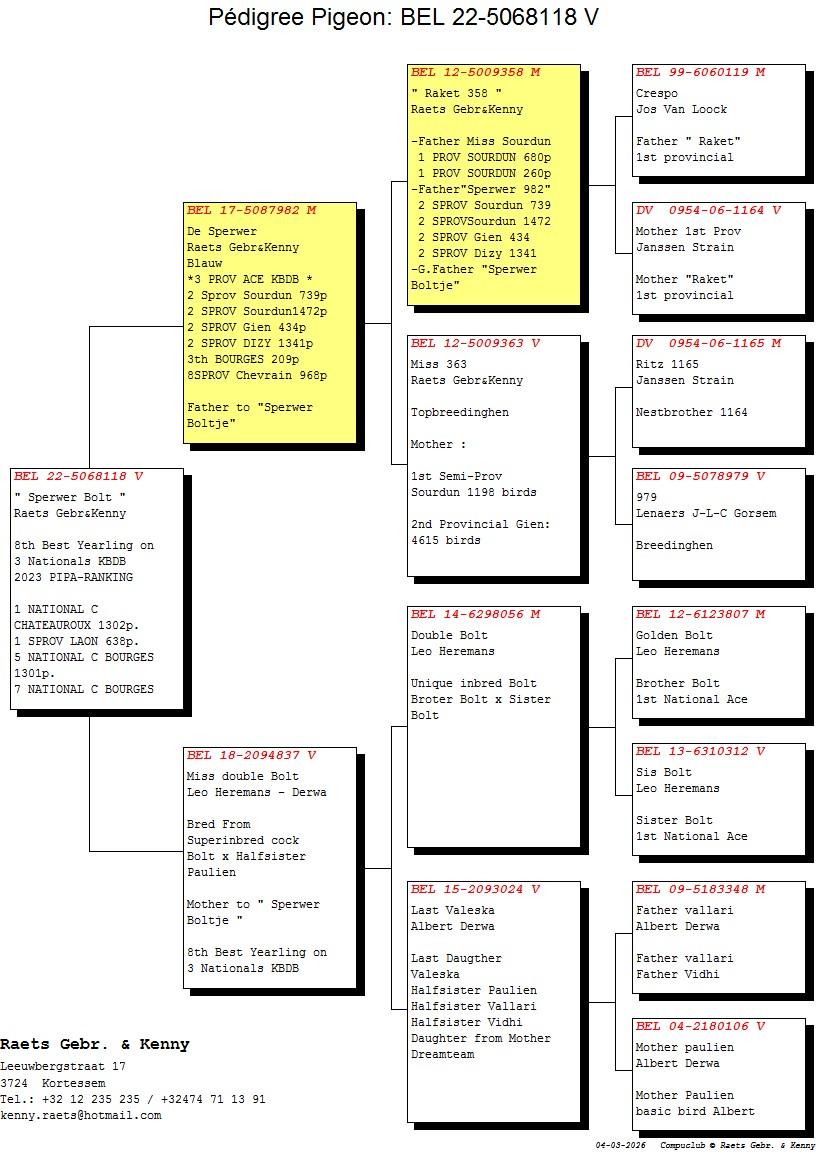 Dochter van “012/19” De Vlieger won 2 x 1ste Rudy Van Reeth x “331/15” Late Leo is lijn Bolt en Gilbert Leo Heremans en moeder van 2 Nat Argenton 13.393d