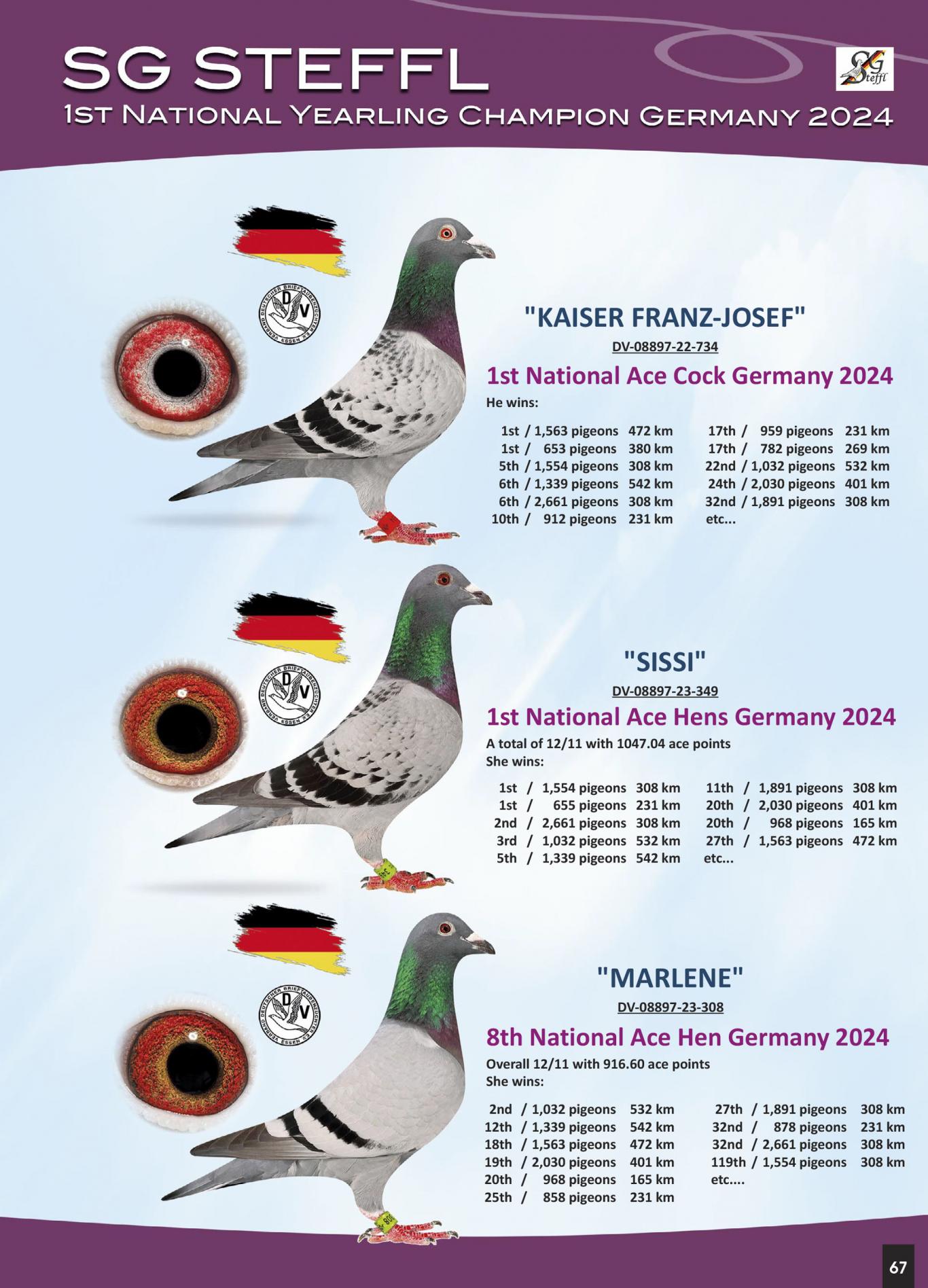 1e Asduif van Duitsland 2024 duivinnen met "Sissi"