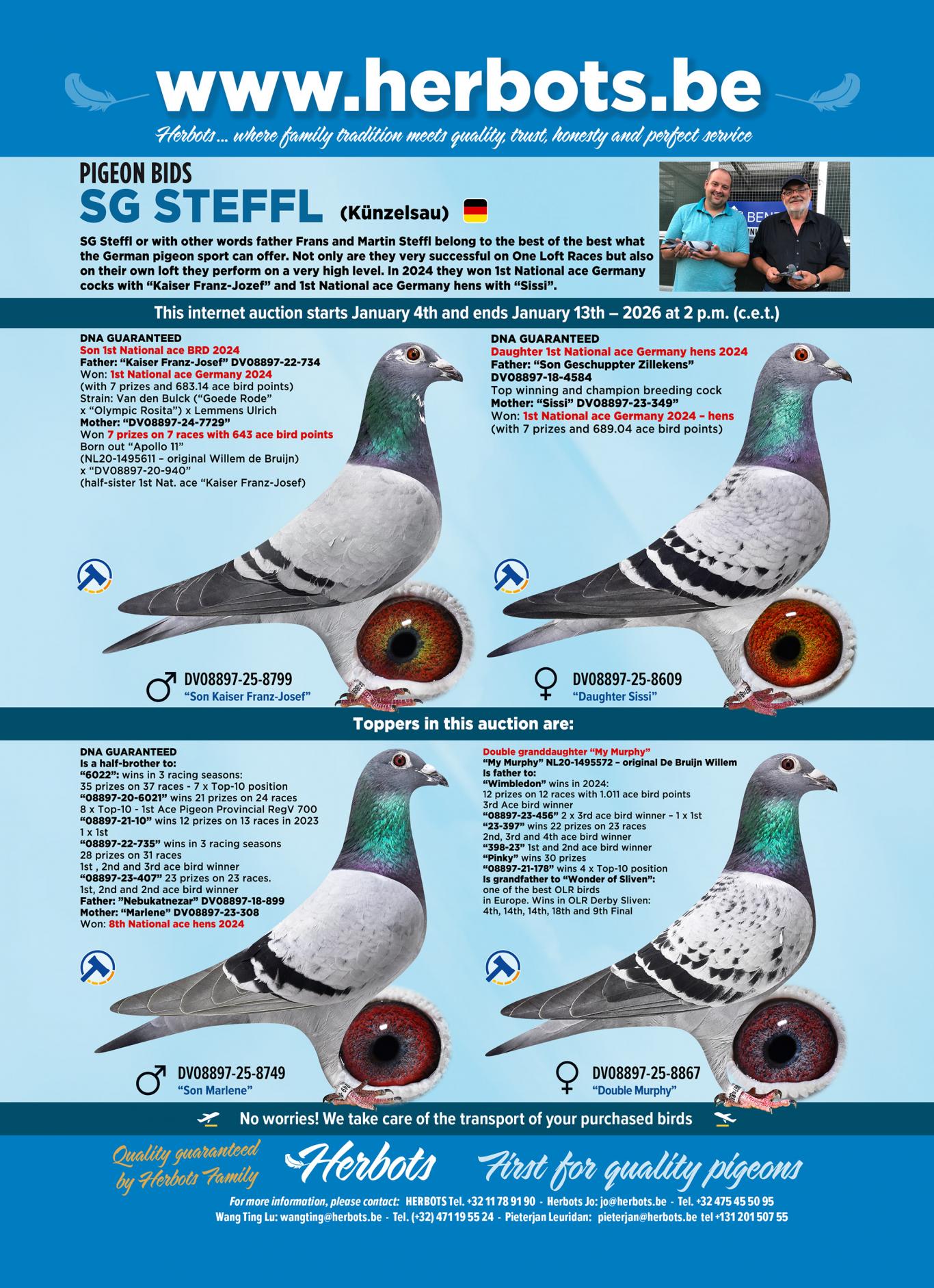 Speciaal voor internetverkoop Pigeon Bids, kweekte en selecteerden Franz en Martin Steffl een prachtige groep 2025-duiven uit hun allerbeste duiven