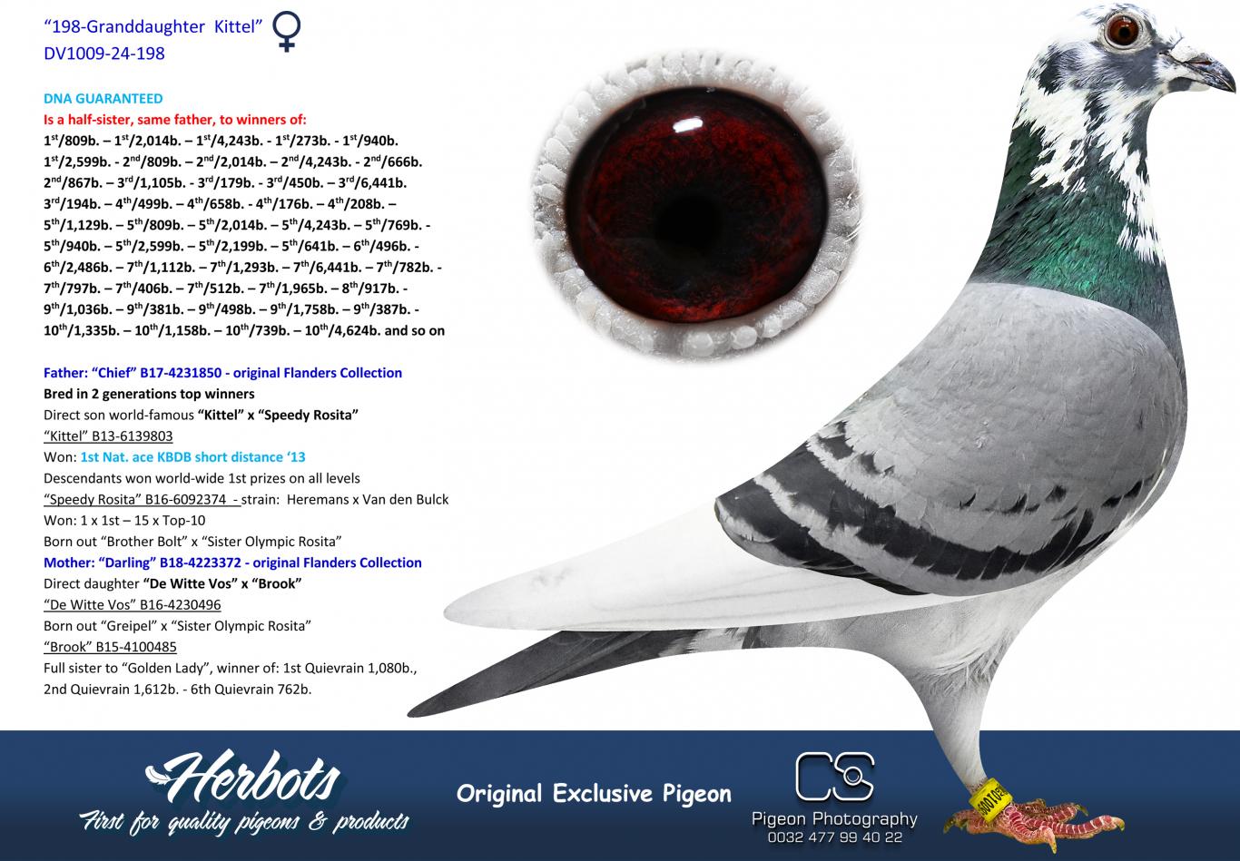 Exclusief voor Pigeon Bids biedt "Exclusive Pigeon" 12 streng geselecteerde 2024-duiven uit hun kwekers aan. Alle duiven worden aangeboden met DNA garantie