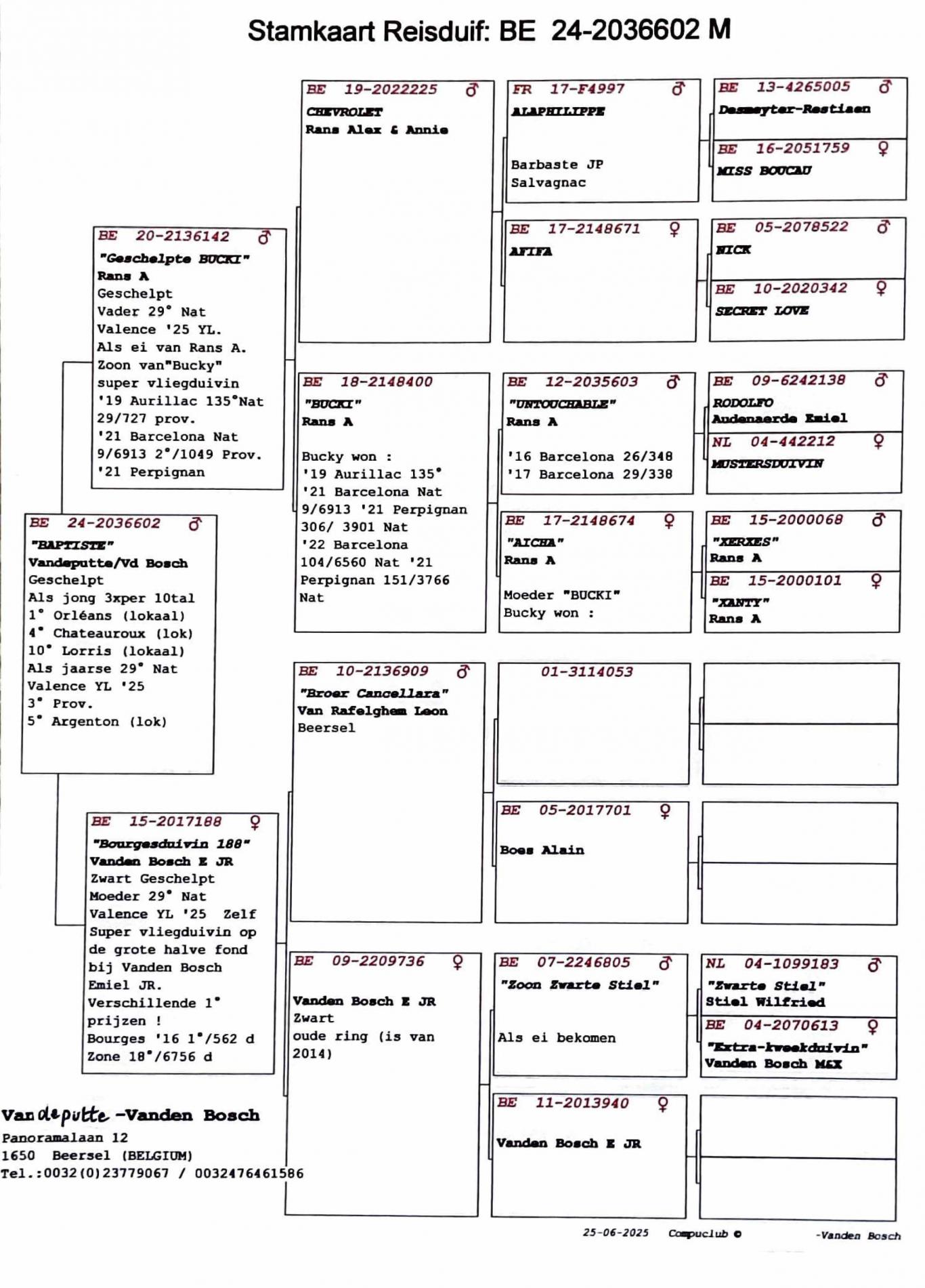 Won ook al 2de Bourges en 2de Argenton lokaal als jonge duif en 2de Argenton als jaarling.