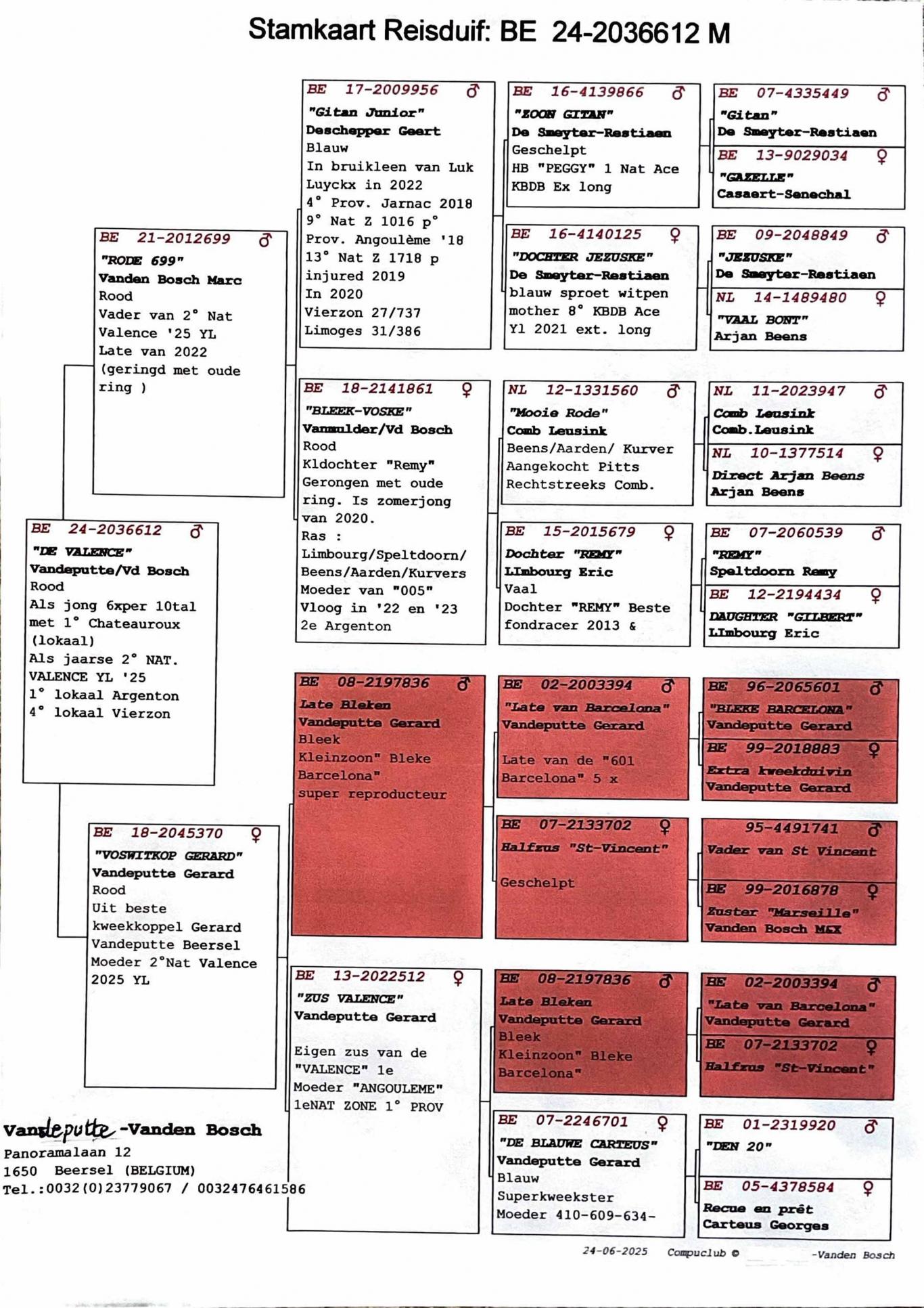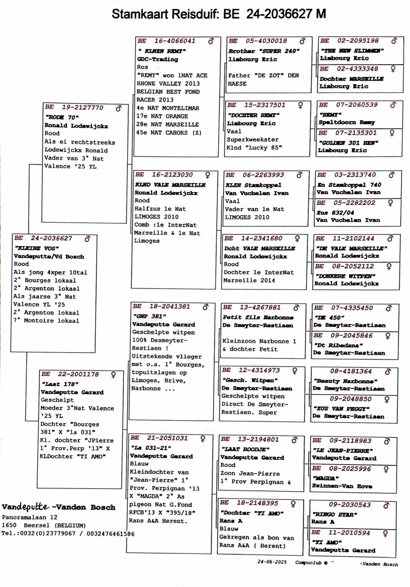 De duiven vlogen in aanloop richting de Rhone vallei vluchten enkele snelheidsvluchten, dan 2x halve fond en dan Bourges Nationaal. Dan kregen ze een week rust en zo gingen ze dan naar Valence. De oude duiven vlogen tussen de 2 Rhone vluchten niets. De eerste jaarling die nu 2de nationaal wint vloog als jonge duif 3 nationale vluchten en toont nu ook weer zijn talent.