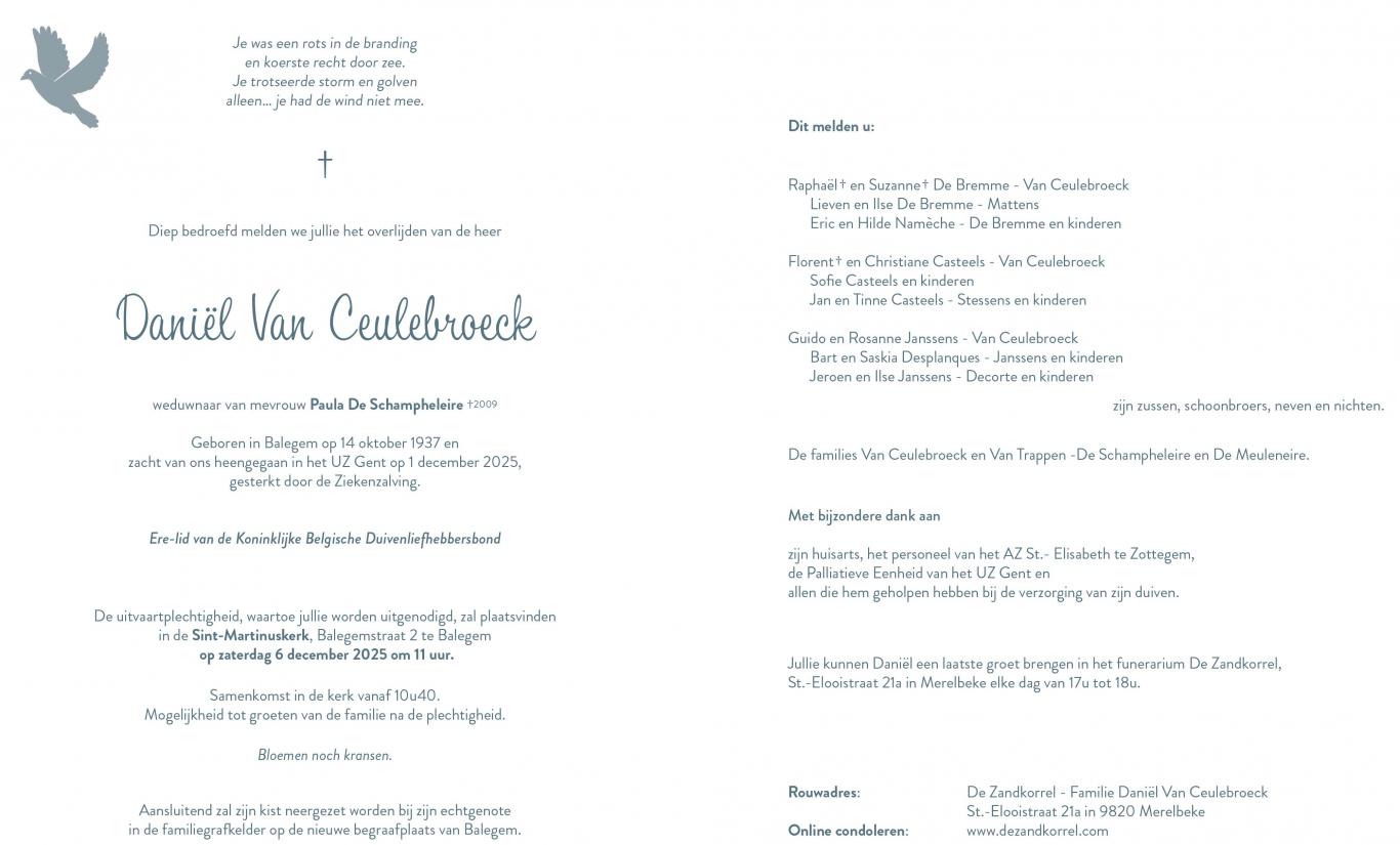 We vernemen het heengaan van Dhr. Daniel Van Ceulebroeck