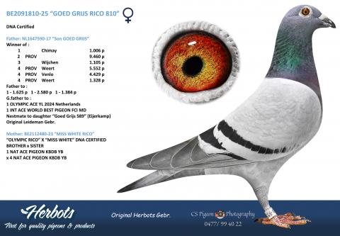 DNA CertifiedFather: NL1647590-17 "Son GOED GRIJS"Winner of :1 Chimay 1.006 p2 PRO ...