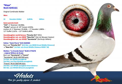 Combinatie Wakker (Urk) investeerde gericht in de kwaliteit van hun kweekhok. Zij kochten originele duiven van Ad Schaerlaeckens, Willem de Bruijn (dochter “Secretariat”), PEC (verschillende kinderen “Porsche 911” x “New Kim” van Gaston Van de Wouwer), Clicque Gino (o.a. “Golden King”: 1e nat. asduif KBDB ), Sangers Pigeons (Van de Bulck duiven) enz..