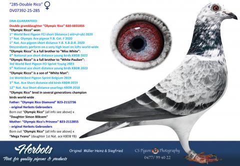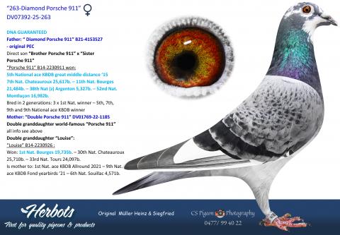 In this auction he offers grandchildren of famous birds such as "Porsche 911", "Prince Porsche", "Best Kittel", "Best Kittel II, "Blue Best Kittel", "Daniel", "Unique Porsche", "Olympic Rico", "Sagan" and out original Gebr. Leideman birds (breedingline "Crack 19" - "Goed Grijs" and "Arturo")