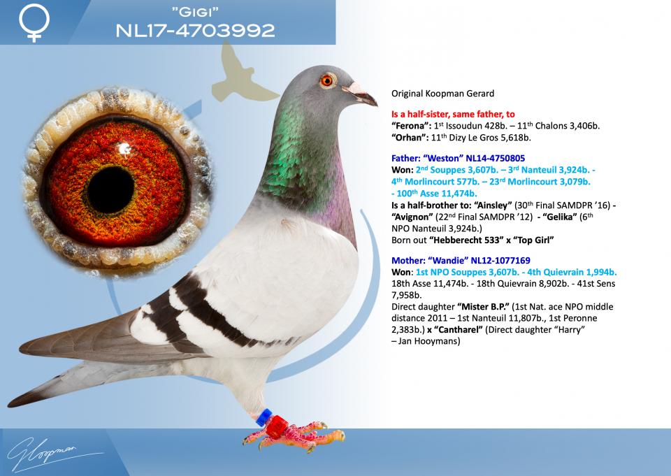 Direct daughter “Mister B.P.” (1st Nat. ace NPO middle distance 2011 – 1st Nanteuil 11,807b., 1st Peronne 2,383b.) x “Cantharel” (Direct daughter “Harry” – Jan Hooymans)