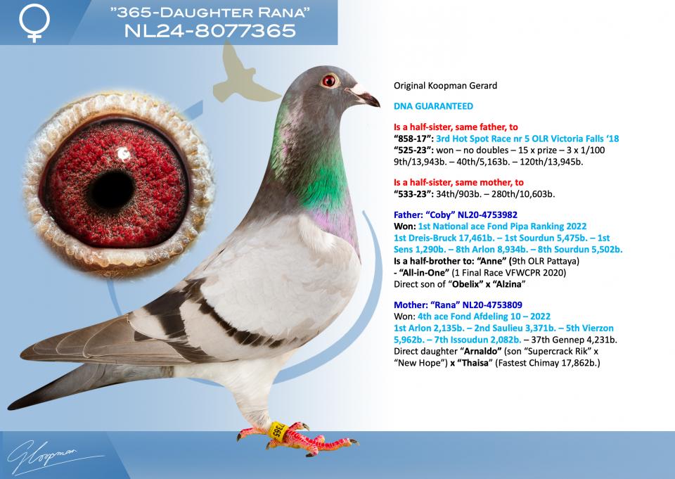 Direct daughter “Arnaldo” (son “Supercrack Rik” x “New Hope”) x “Thaisa” (Fastest Chimay 17,862b.)