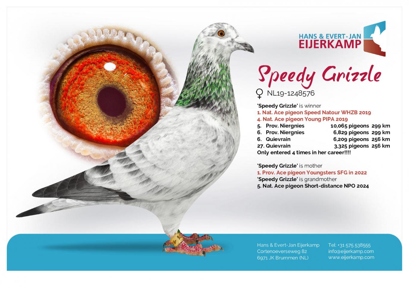 When, due to a necessary move in 2020, Andre and Bert Leideman's entire racing team was sold, Team Eijerkamp had to dig deep into their pockets to acquire several top pigeons, including 'Viton' and 'Daughter Goed Grijs', the parents of 'Speedy Grizzle'.