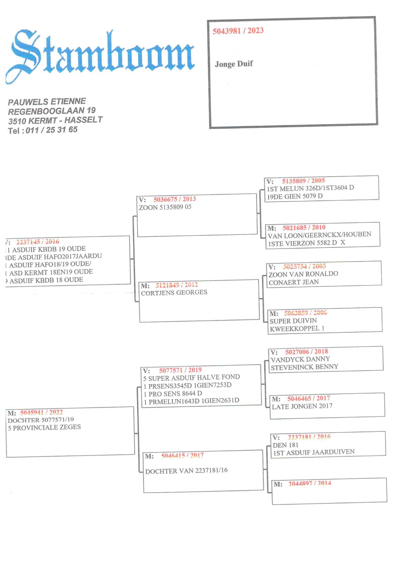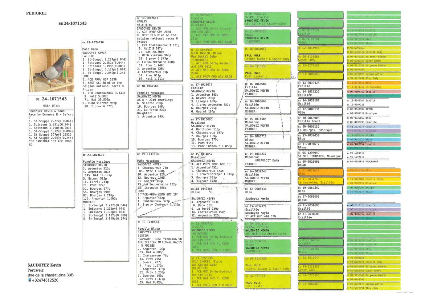 If we analyze the pedigree of this top pigeon over several generations, we arrive at pigeons from Gaby Vandenabeele/Dirk Van Dyck ("Kannibaal") and Schellens/Voets.