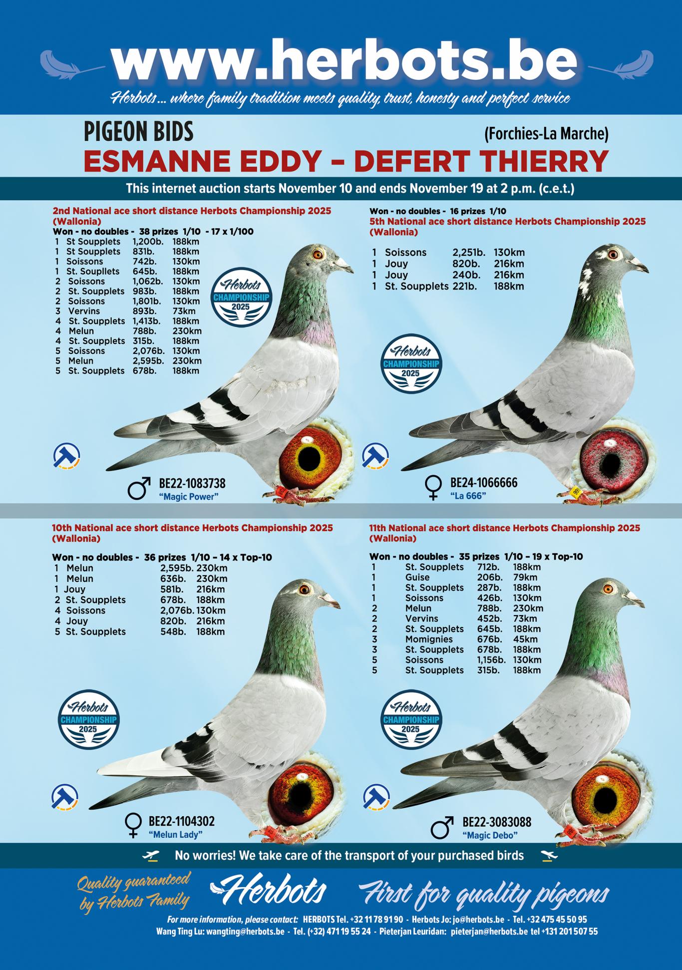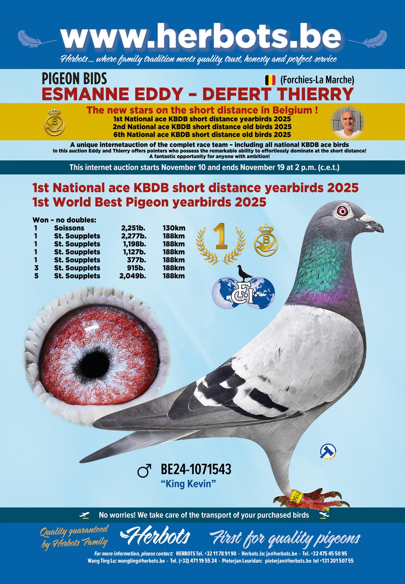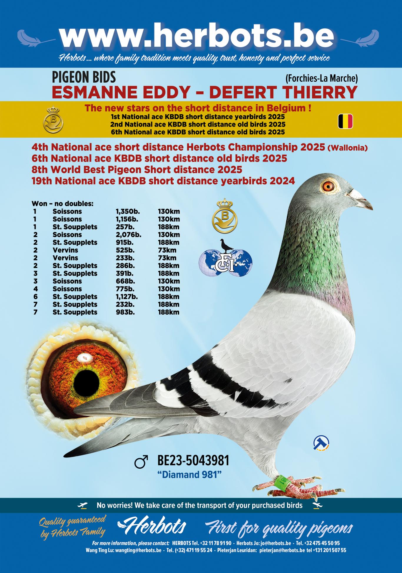 Esmanne Eddy – Defert Thierry 1st National Ace Pigeon KBDB Sprint Yearlings 2025 2nd National Ace Pigeon KBDB Sprint Old Birds 2025