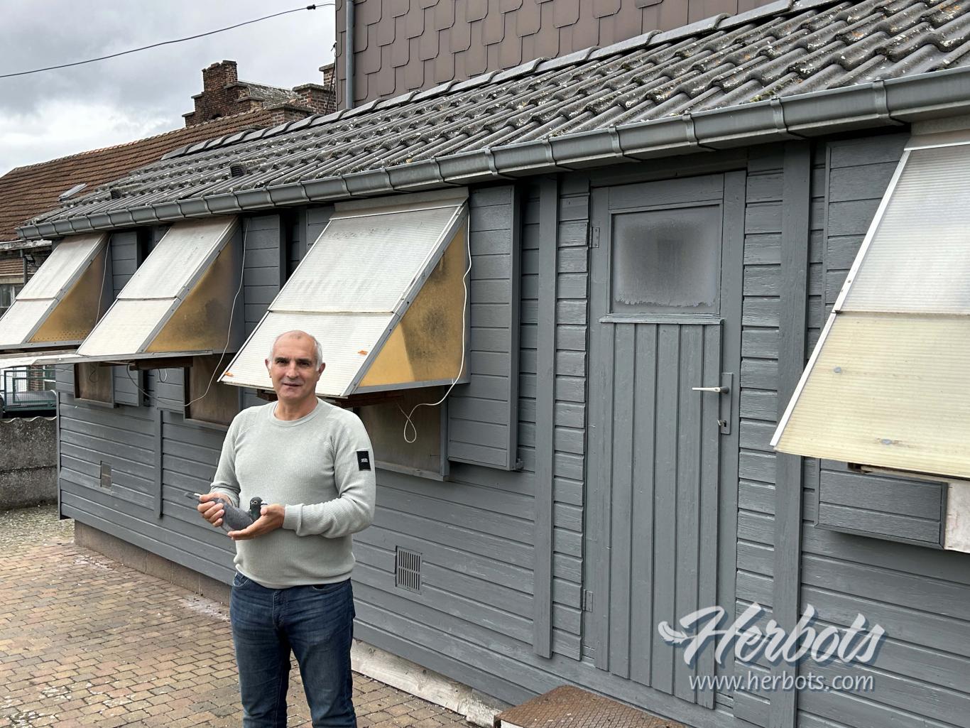 Around forty young pigeons are raced annually. This ensures the youngsters are free to do as they please. To inject some motivation into the flock, an older hen or cock is sometimes mixed in with the youngsters. Older pigeons among the youngsters always create a pleasant atmosphere. It's also worth mentioning that the best racing pigeons, after their brilliant racing careers, are entrusted to Tordeur-Deval or Deltenre Benôit. In return, Eddy is allowed to acquire some youngsters each year. And so the circle is complete, and Eddy no longer has to worry about breeding pigeons.