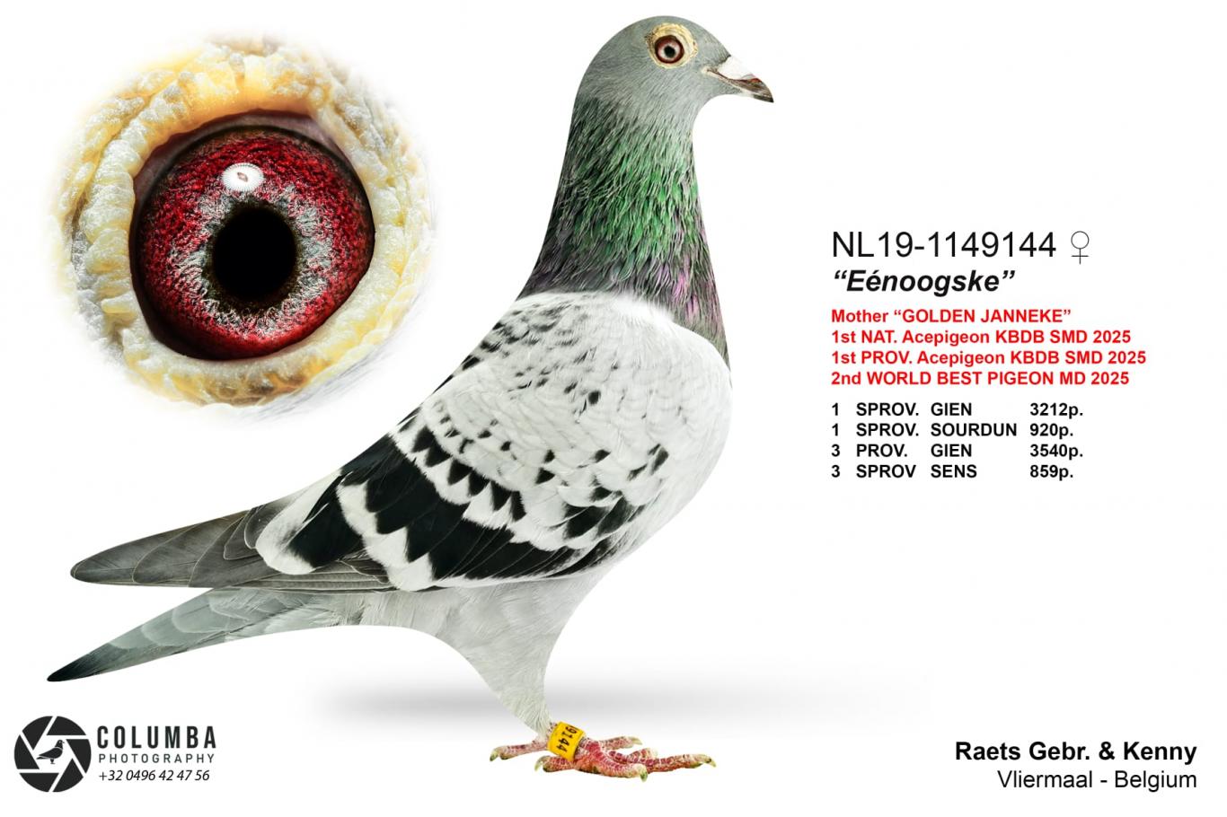 Full brother “Janne” 1st Nat Ace Pigeon heavy Middle Distance KBDB 2024 with a.o. 4th Nat La Souterraine 5,243p – 8th Nat Bourges 5,529p – 15th Nat Chateauroux 8,075p – 20th Nat Argenton 8,343p