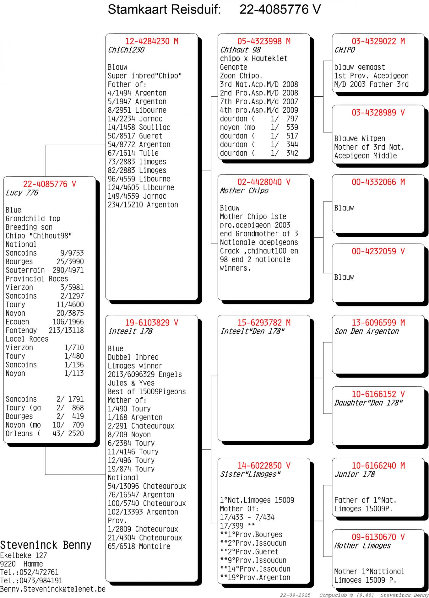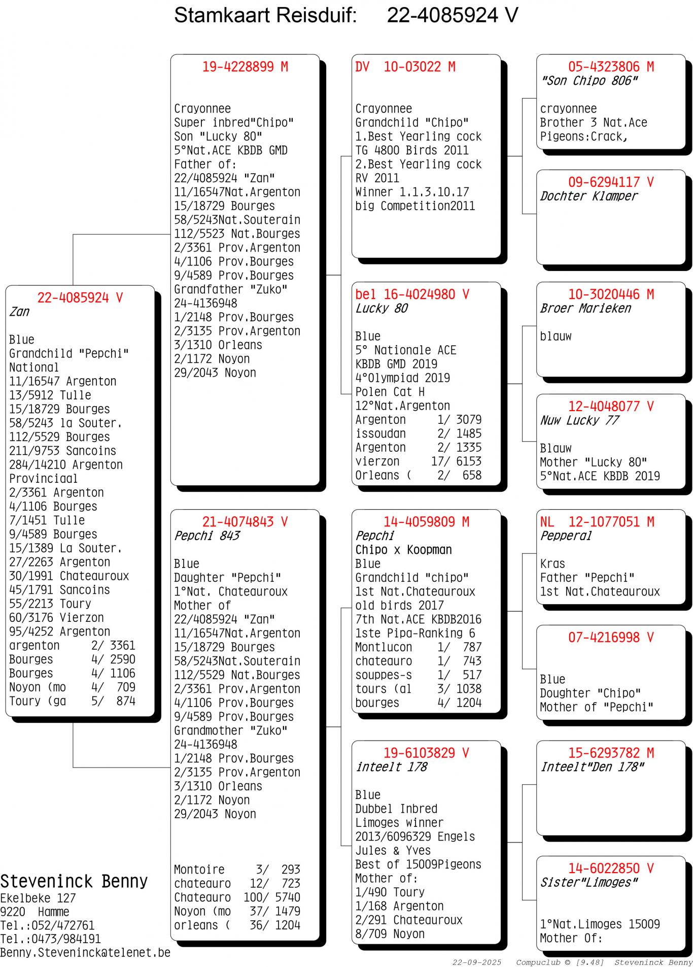 Hats off to you, and we truly mean it. It's amazing how the Steveninck colony, year after year…or in other words…season after season, manages to establish itself at the top of Belgian pigeon racing. We could recount all the titles from past years, but we won't. This is partly because these impressive achievements are well-known to many, and partly because we want to highlight the achievements of the current Steveninck champions.