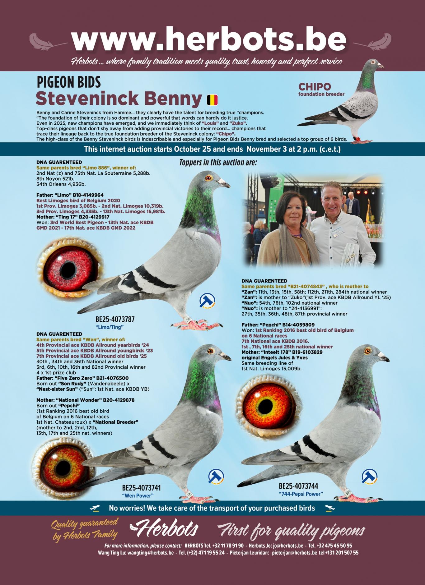BENNY OFFERS AN UNIQUE GROUP OF STRICTLY SELECTED PIGEONS ON INTERNET AUCTION PIGEON BIDS
