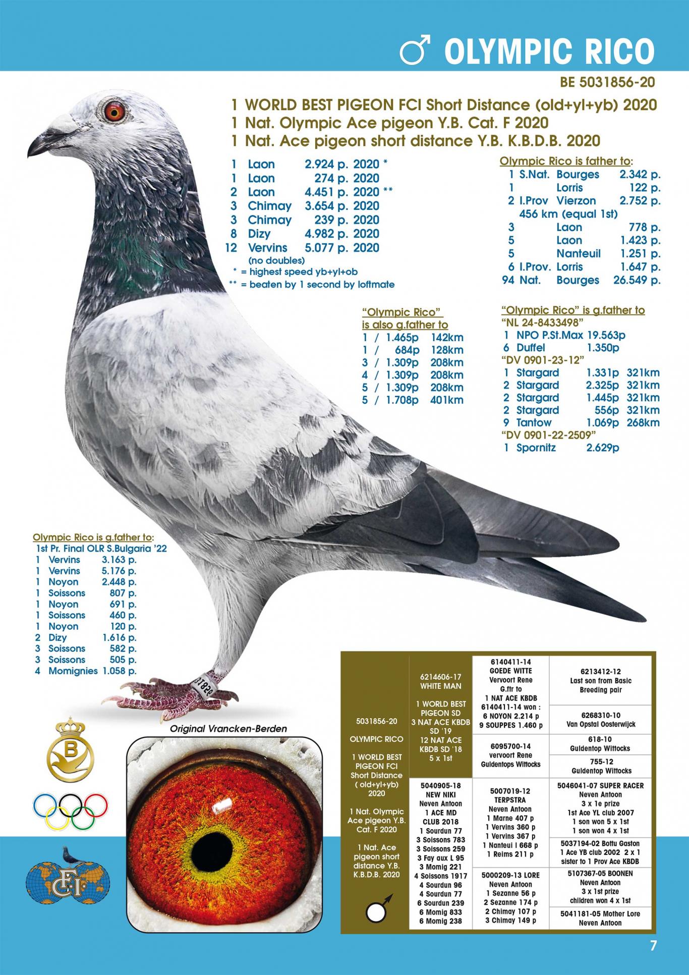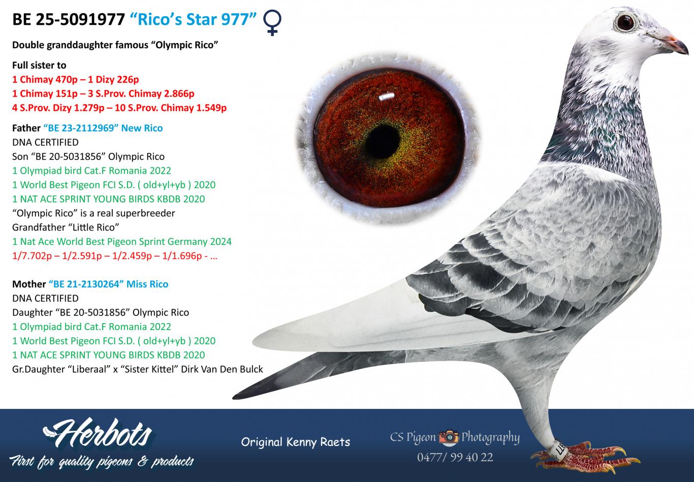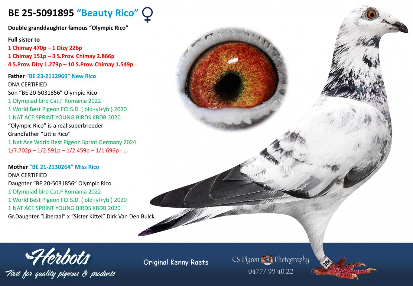"Olympic Rico" has provided the Herbots family with several super pigeons worldwide, and the references continue to grow, which makes us very happy.