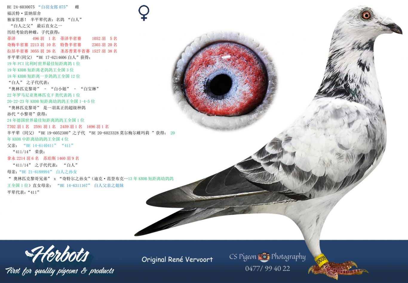 3rd World Best Pigeon Young 2023 with “White Paulien”