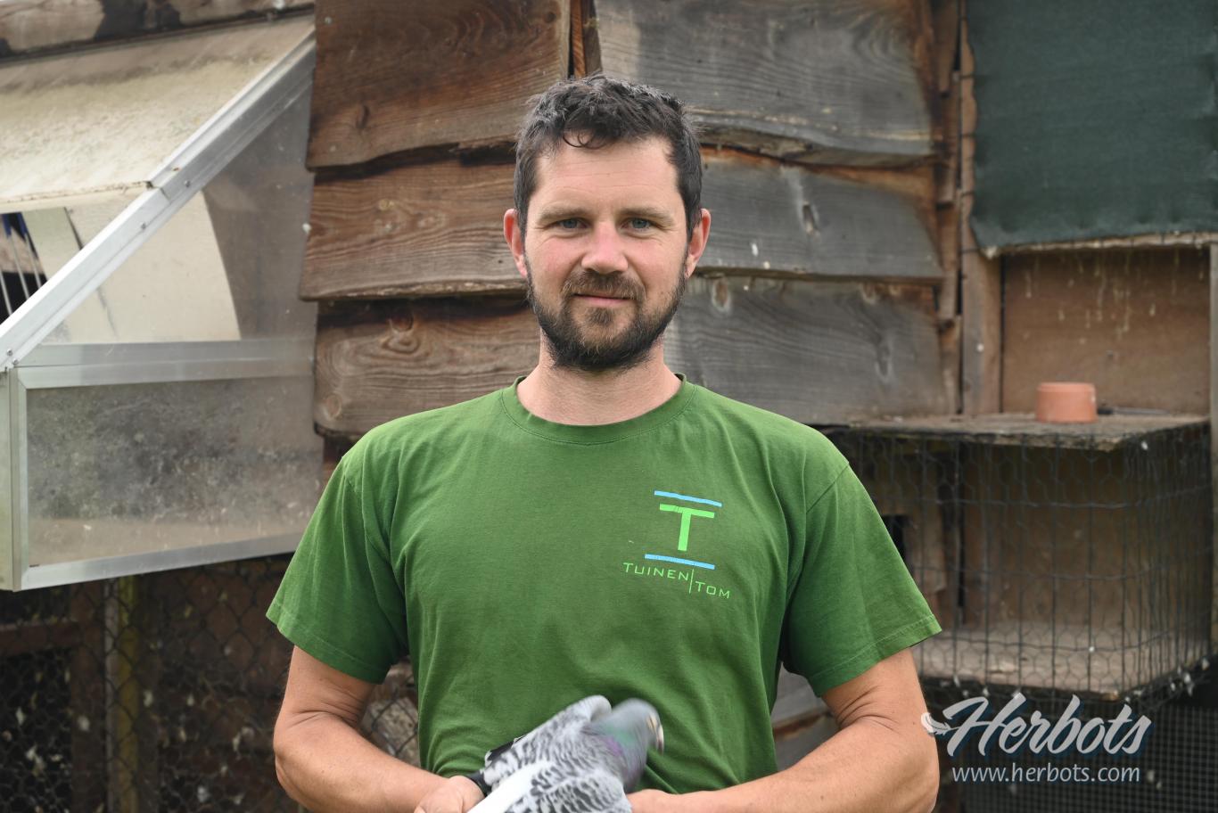 Tom (born in '87) is a self-employed gardener and then there is not much free time. The day's work starts early and he doesn't mind working an extra hour because the young family still has a lot of plans in terms of renovations to their new house, so any extra budget is welcome. But a man also needs relaxation and Tom finds it in our beloved pigeon sport. Those who know Tom know that he does not like half measures and that is why he chose to concentrate on playing with hens. No widowers here and the 65 youngsters are only taught very well. Some speed races and if possible some middle distance races is the only experience they gain in their 1st year of life.