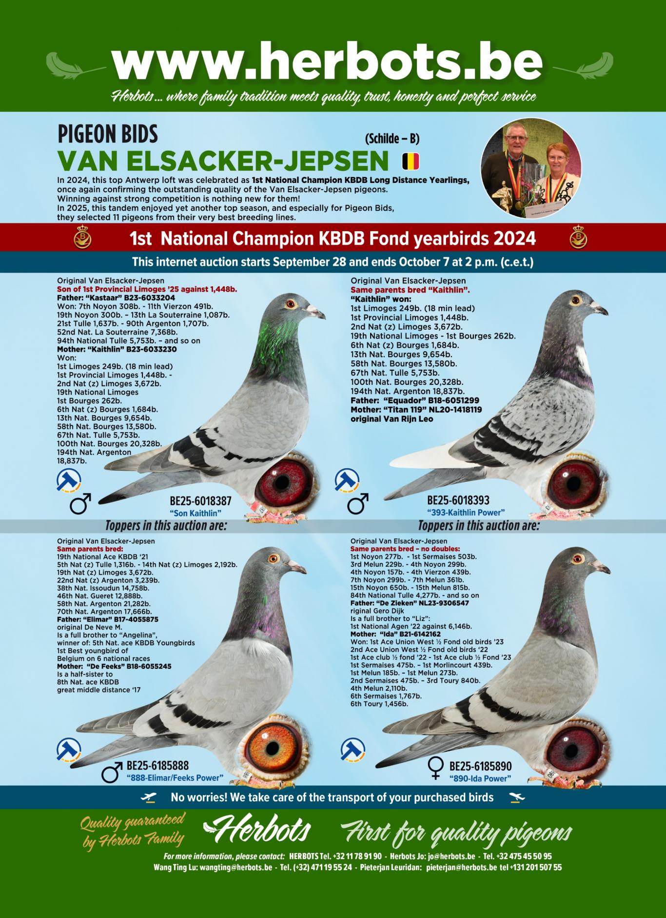 Schilde: The class of the Van Elsacker-Jepsen pigeons has known no limits for decades. Knowing that he became "King" of Union Antwerp (the most iconic middle-distance association ever) in 1986, you already know enough. Serge simply has pigeon racing at his fingertips, and such born champions never go into a tailspin. Even if they have a less successful season, they always straighten their backs, and renewed courage and motivation bring them back where they belong: at the top of Belgian pigeon racing.