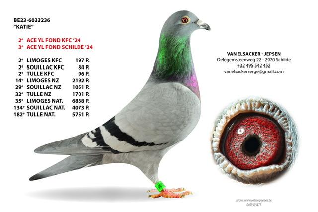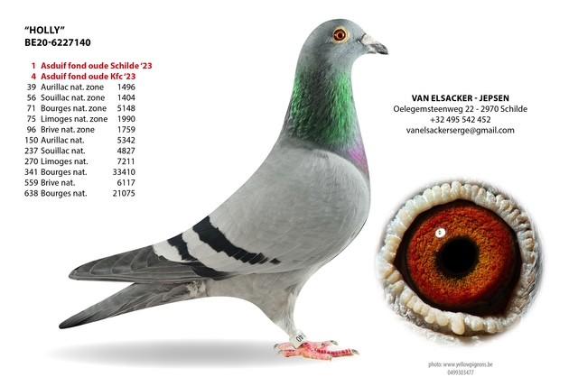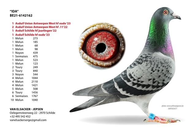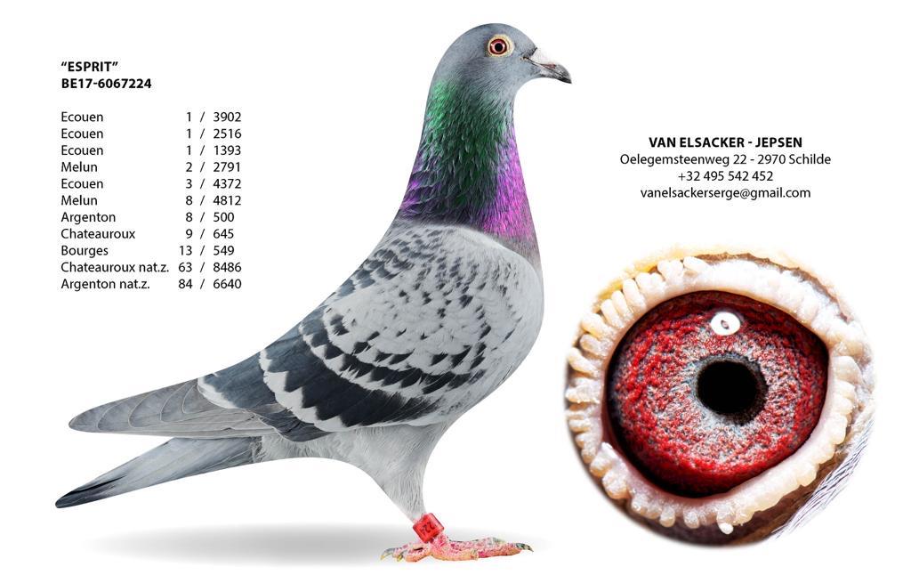 The strength of the Van Elsacker-Jepsen pigeons lies in their ability to produce top-class pigeons in multiple generations. Take hen "Beyonce" for example. She is the grandmother of "Esprit," and "Esprit" is in turn the grandmother of "Ida." It must be a real treat for a fancier to have such a strong breeding line at their disposal.