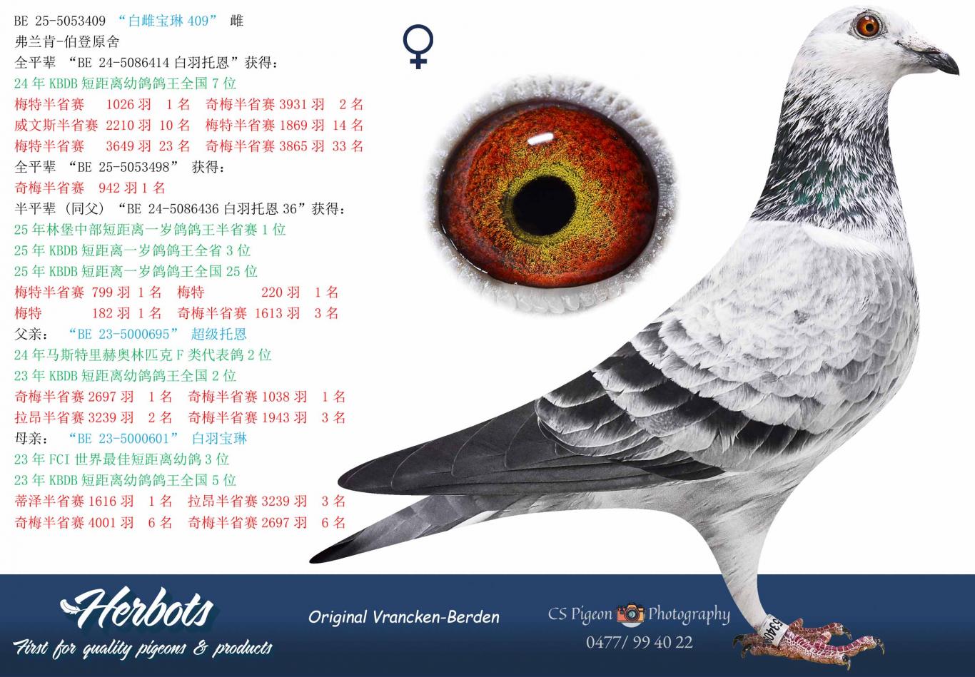 This super pigeon was 2nd National Ace Pigeon Young Birds KBDB 2023 and 2nd Olympiad Pigeon Cat. F Maastricht 2024 as a young bird.