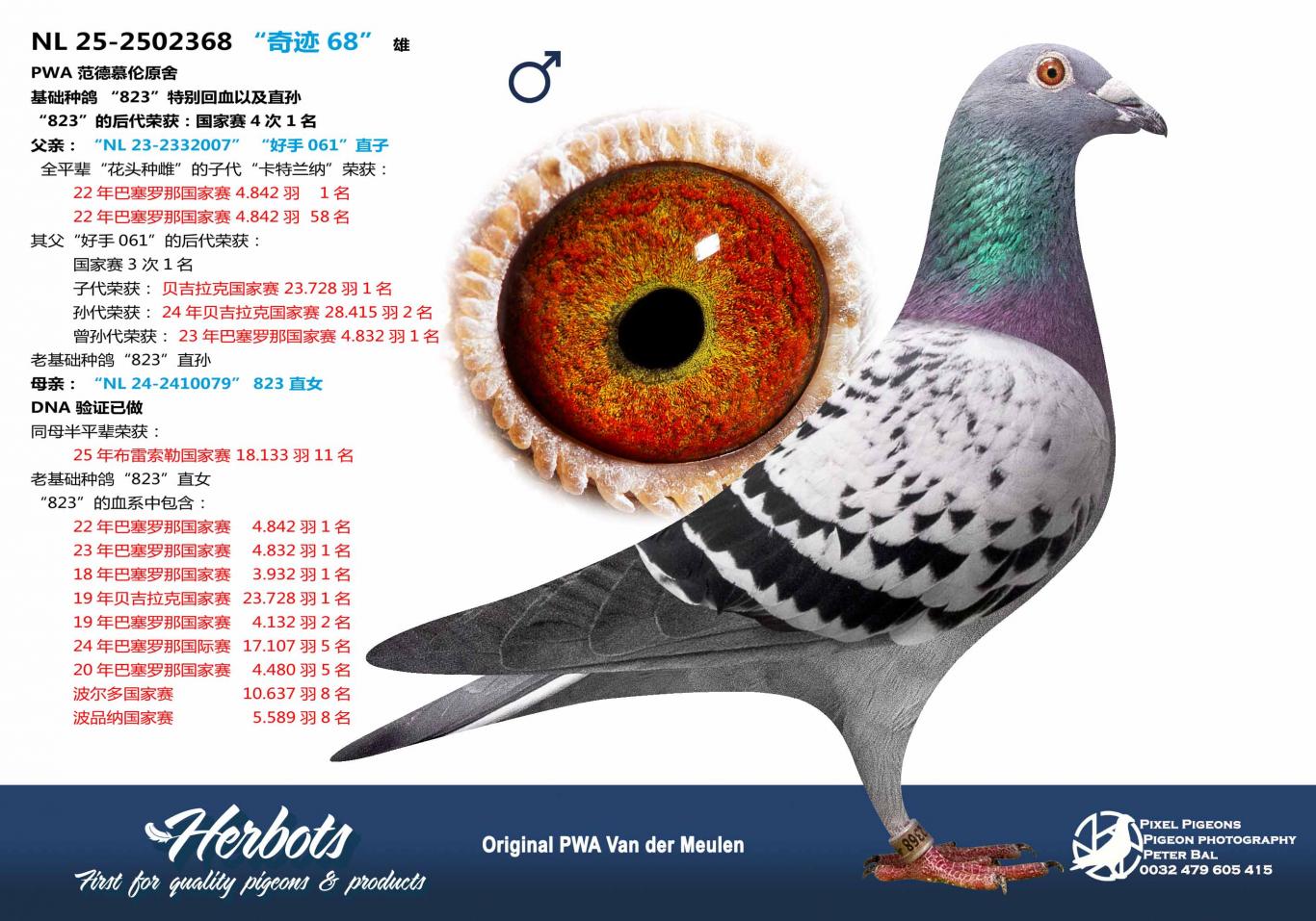 Sire of 8th National PerpignanSire of "061/08" 44th National Dax 8,728p, Grandsire of "El Cid" 1st National Barcelona '18 3,932p, Grandsire of "De Bergerac" 1st National Bergerac '19 23,728p, Grandsire of 7th Nat Perigeux 13,348p, Grandsire of "264/18" 49th National Barcelona 4,832 old in 2023, Great-grandsire of 1st National Barcelona 4,842 old in 2022, Great-grandsire of 2nd National Bergerac 28,415p in 2024, Great-grandsire of "Mr. Fit Barcelona" 2nd National Barcelona '19 4,132p, Great-grandsire of "Bonte 760" 1st National Barcelona 4,832 old in 2023. Great-grandfather of 5th International Barcelona 17,107d 2024 at Vincent Vork.