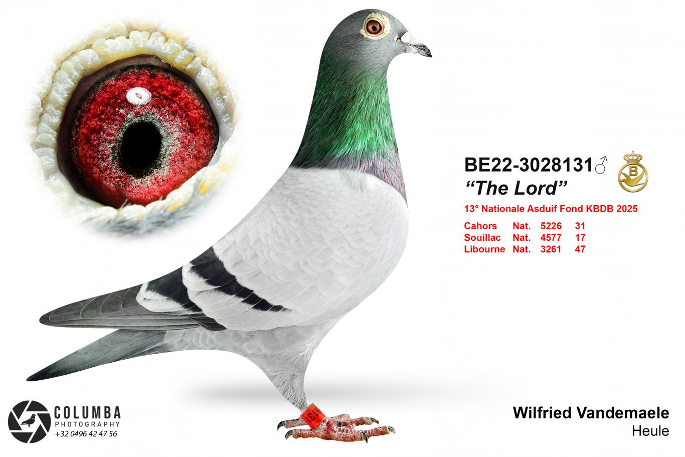 His sire is Braven, often the top breeding son of the wonder pigeon Contador of Joël Verschoot (Contador paired to pigeons from Lidou, Wilfried, etc.).