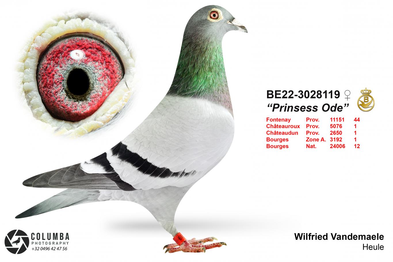 The dam is Odeke, who herself performed well nationally in Limoges and descends from Noël Lippens's pigeons x half-brother Figo x Gino Clicque x Joël Verschoot, bred by Wilfried.