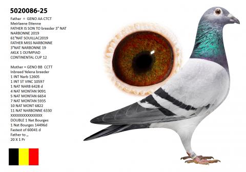 Father: BE19-5111396 “EAGLE ACE”WON:Super ace pigeon gewest M.L. 2020 ...