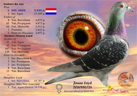 Gr.father is "L'Européene"29th Best European pigeon overall int. races - 2 prizes 20 ...