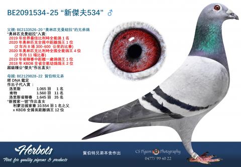 父親: BE2133526-20 “奧林匹克曼紐拉”的兄弟鴿“奧林匹克曼紐拉”入賞: 2019年世界最佳比利時全能鴿1名 2020年奧林匹克全國中距離鴿王1位 /span> ...