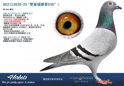 經DNA鑑定 父親: BE2124801-22 賀伯特兄弟作出子代入賞: 洛伊 352羽 7名 Ư/p> ...