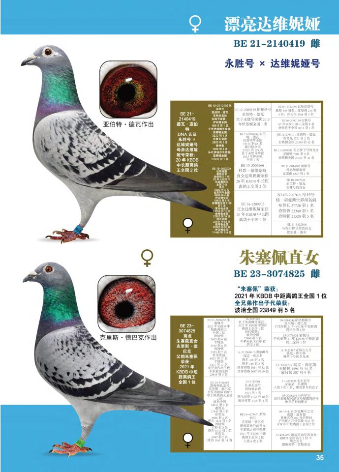 母亲全平辈荣获:KBDB大中距离鸽王全省2位波治国家赛34 311羽 2名彭图瓦 17 443羽 4名威廉迪布恩 + 003血系
