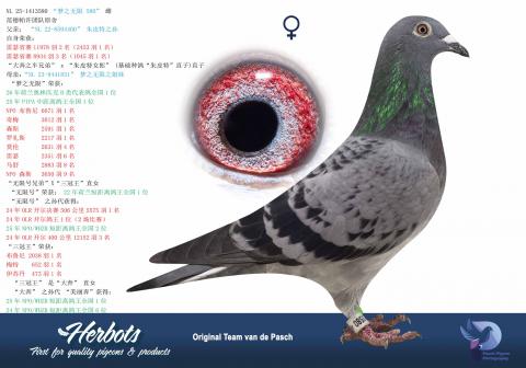 在本场特别的网络拍卖中,荷兰范德帕许团队将带来他们种鸽配对的顶级后代。这些后代主要以 “大奔”、“无限号”、“朱皮特”这几羽超级种鸽为基础繁育而来,且它们的血统很大程度上源自威廉·迪布鲁恩的品系根基。