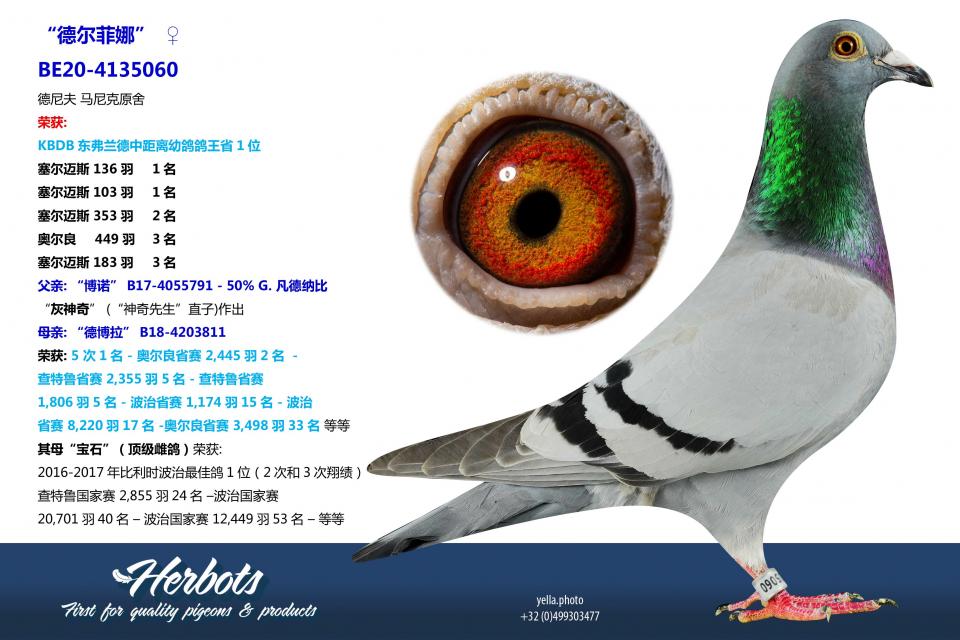 其母“宝石”(顶级雌鸽)荣获:
