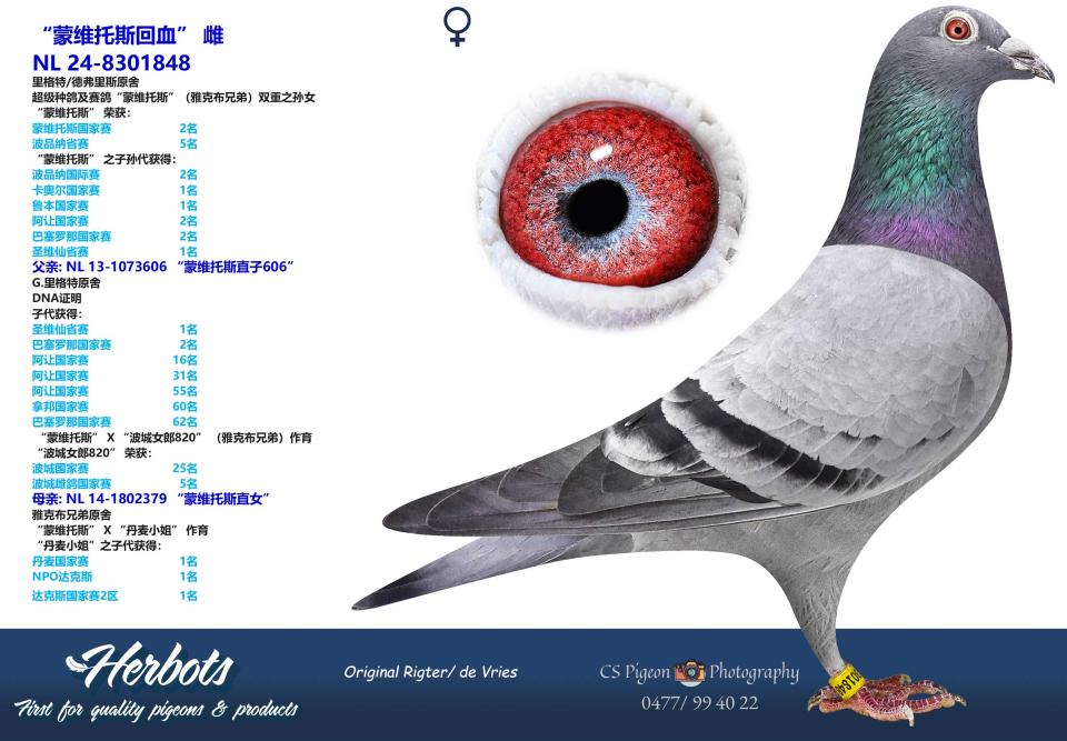 超级种鸽及赛鸽“蒙维托斯”(雅克布兄弟)双重之孙女