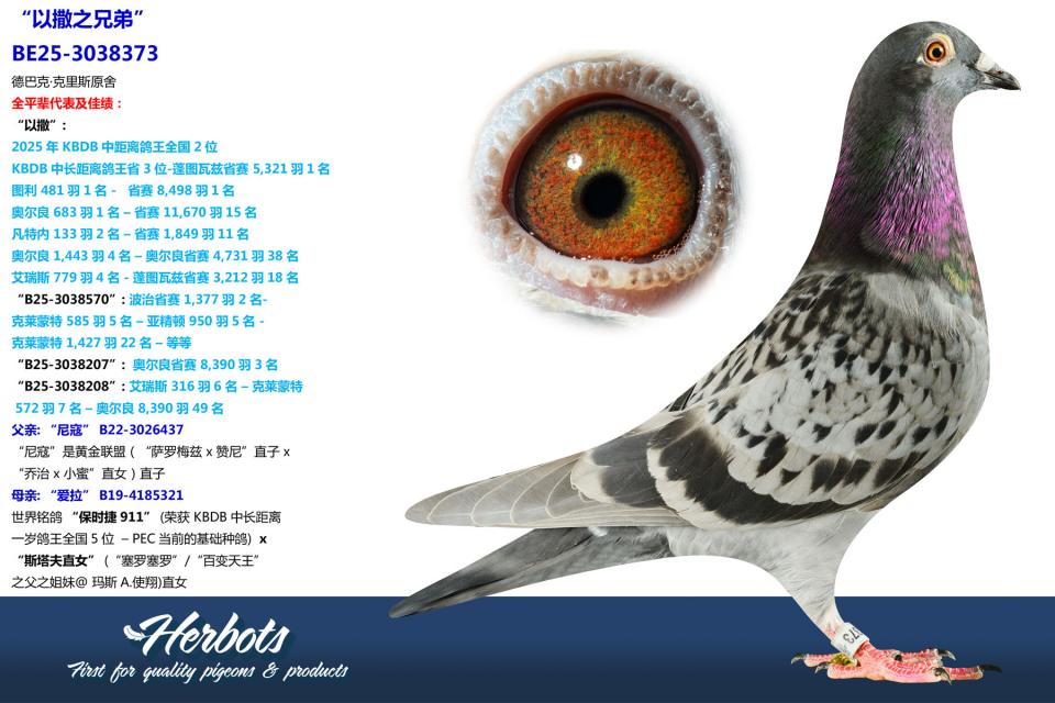 世界铭鸽 “保时捷911” (荣获 KBDB中长距离一岁鸽王全国5位 –