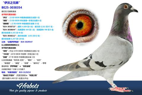 荣获: NPO幼鸽鸽王全国2位, 16年WHZB/TBOTB幼鸽鸽王全国3位,