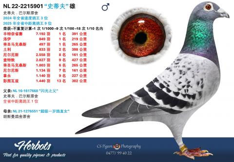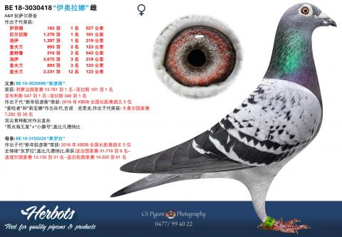 父亲“布拉姆直子”作出子代荣获:全国幼鸽鸽王11位