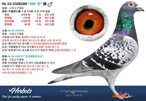 血系:“第1号”,贺伯特兄弟: 999年KBDB全国中距离鸽王1位