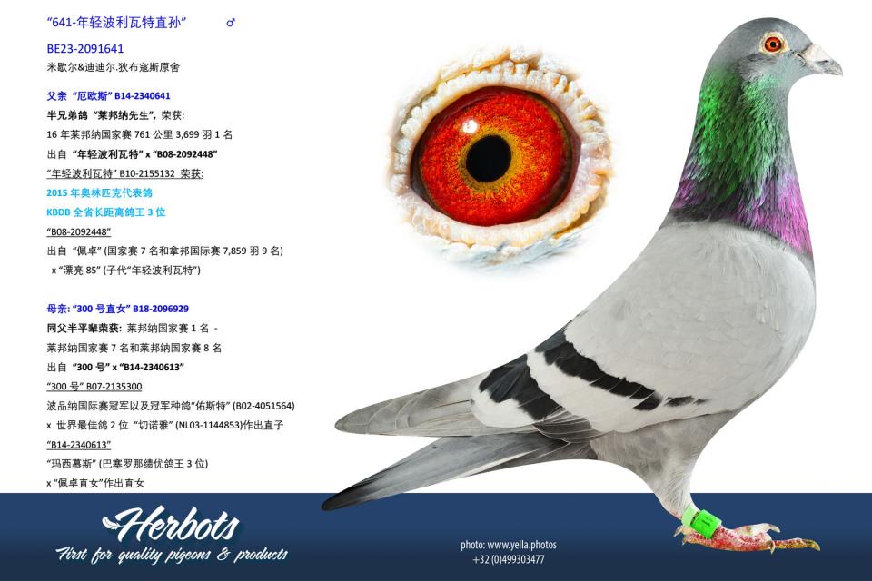 波品纳国际赛冠军以及冠军种鸽“佑斯特” (B02-4051564)