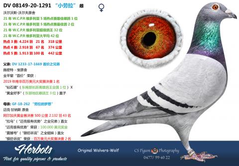 21年W.C.P.R维多利亚5场热点赛最佳雌鸽1位