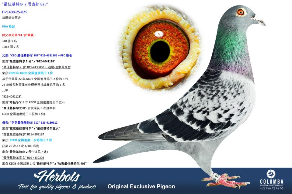 出自KBDB全国鸽王1位“最佳基特尔” x “独家最佳基特尔402”
