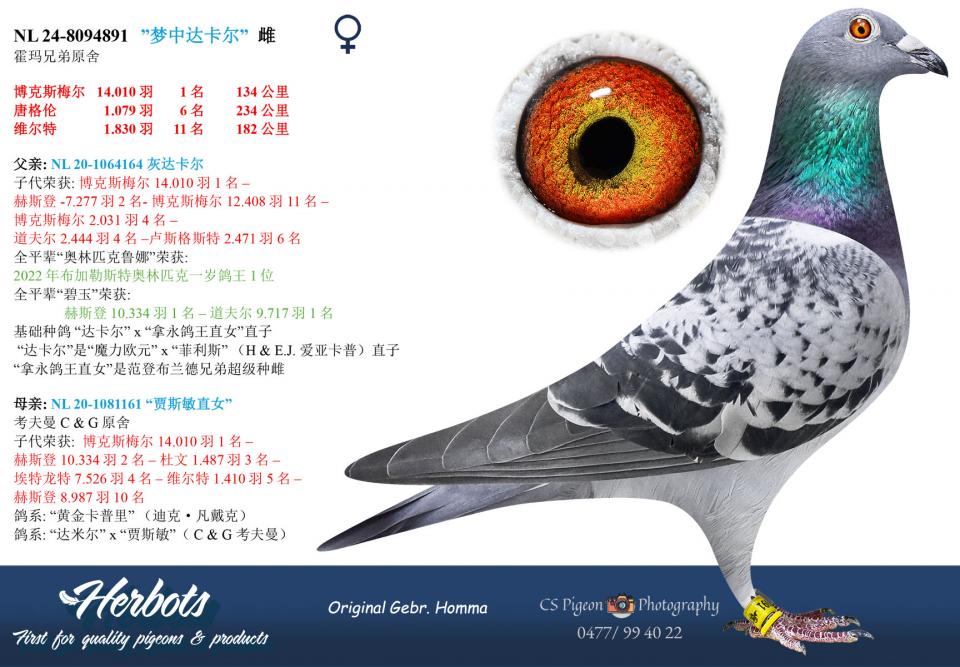 “拿永鸽王直女”(范登布兰德兄弟超级种雌)