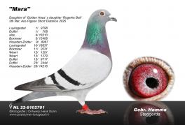 其母“玛拉”荣获: 2025年短距离鸽王全国3位 –