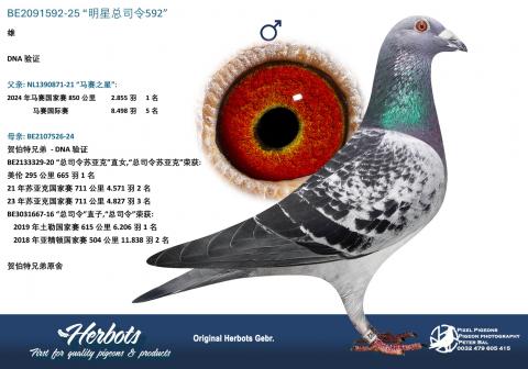 “总司令”:荣获土勒国家赛1名–亚精顿国家赛2名–贺伯特鸽舍现任基础种鸽