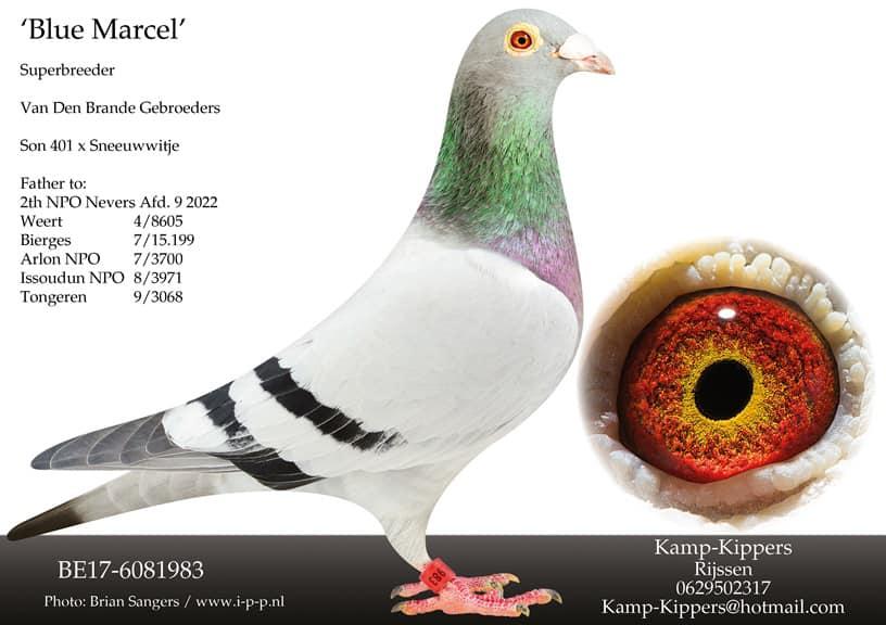 - 1 proven racing pigeon from “Blue Marcel” (Gebr. Van den Brande)