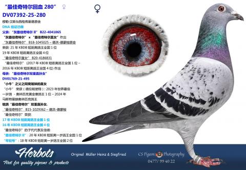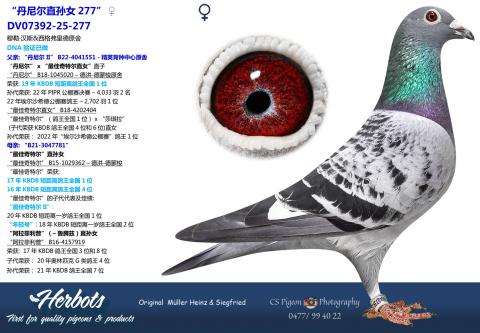 在本次拍卖中,他将推出多羽出自世界著名超级种鸽的孙代,其中包括: