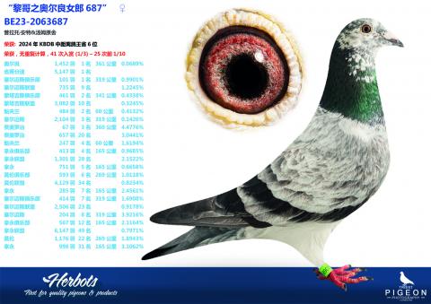 荣获:2023年KBDB短距离一岁鸽王全国4位